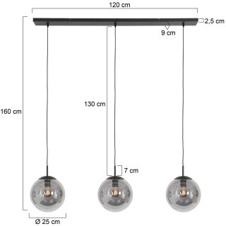 Steinhauer Bollique Pendelleuchte Rauchglas schwarz 3 flammig